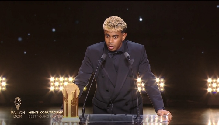 我们在还不知道谁将赢得金球奖的时候,就听到了‘奥斯曼-登贝莱,金球奖得主’的呼声,然后镜头给到了亚马尔的特写,他不过是个孩子,一个18岁的少年。