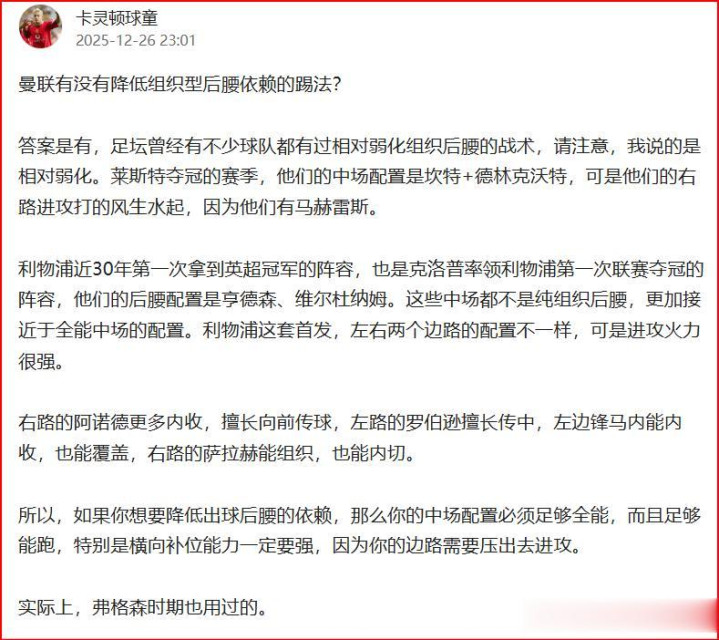 在这场赛事 之前,正好有球迷询问:曼联有没有不依赖组织后腰的踢法。答案是有,这场赛事 就是了,乌加特+卡塞米罗的配置,怎么都算不上是组织后腰,所以曼联的出球选择其实只有走两个边路的选择。
