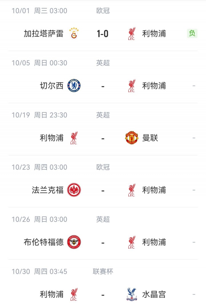 本周末,足球直播无插件免费在线观看利物浦将在职业联赛 中对阵切尔西,后者职业联赛 遭遇两连败。之后进入国际赛事 日,10月下半月,利物浦又将连战曼联、法兰克福、布伦特福德和水晶宫。