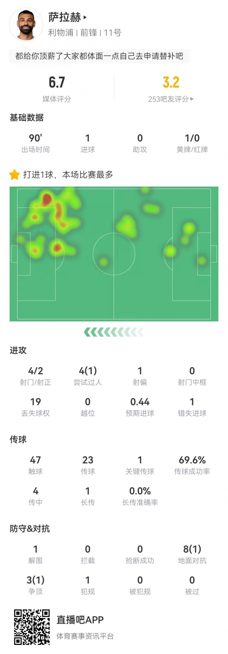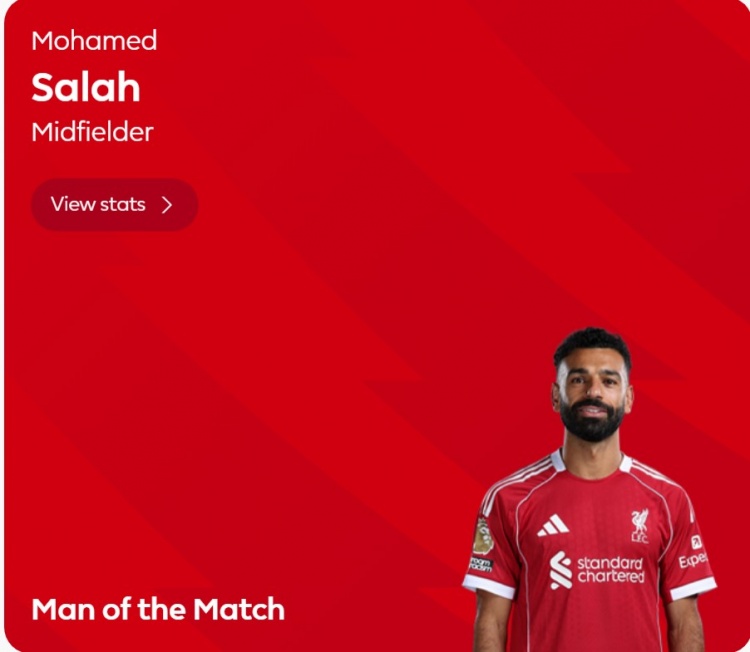 斩获得分 !萨拉赫当选利物浦2-3布伦特福德球迷票选最佳球员