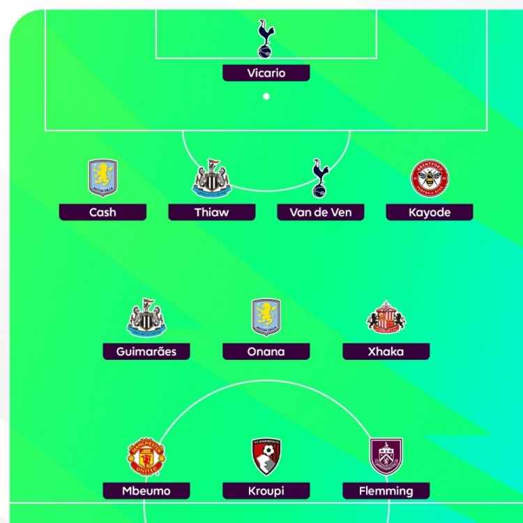 后场球员:卡什(阿斯顿维拉)、佳夫(纽卡斯尔)、范德芬(热刺)、迈克尔-卡约德(布伦特福德)