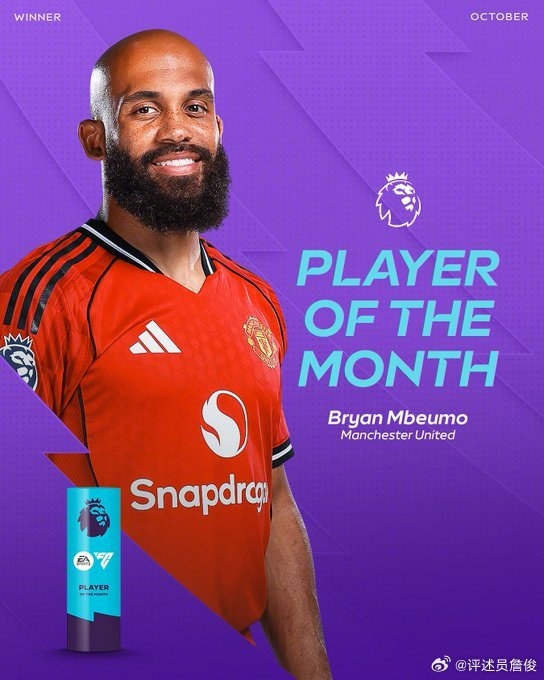 詹俊在社媒写道:姆伯莫当选为英超10月份最佳球员。曼联最近的四轮不败,在攻击 端他是主要功臣。