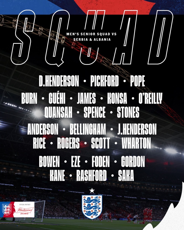 英格兰队公布最新名单准备比赛 下周的世界杯赛 外围赛,免费欧洲杯直播他们是欧洲区唯一已经提前出线的球队,6战全胜一球不丢。曼城的新秀奥赖利和伯恩茅斯的后腰斯科特首次入选。三狮军团人员储备最丰富的是前腰位置,重新入选的贝林厄姆与福登将与罗杰斯争夺杆位机会,同样擅长踢这个位置的帕尔默目前在养伤。